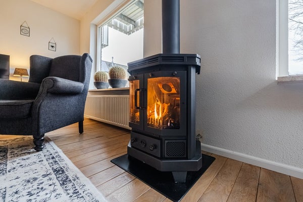 • Royale woonkamer met parketvloer en sfeervolle gashaard;