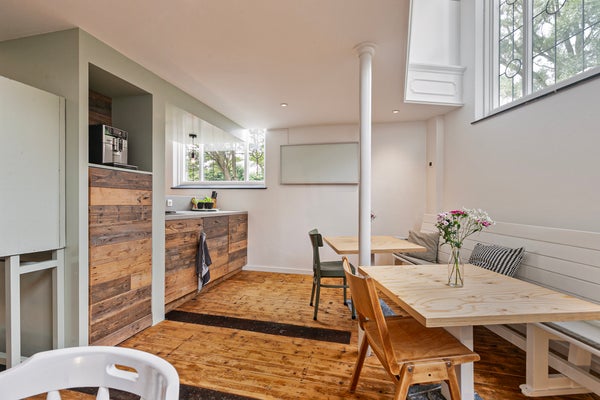 - De tussenwoning heeft een woonoppervlakte van 395 m² en beschikt over 13 kamers, waarvan 7 slaapkamers;