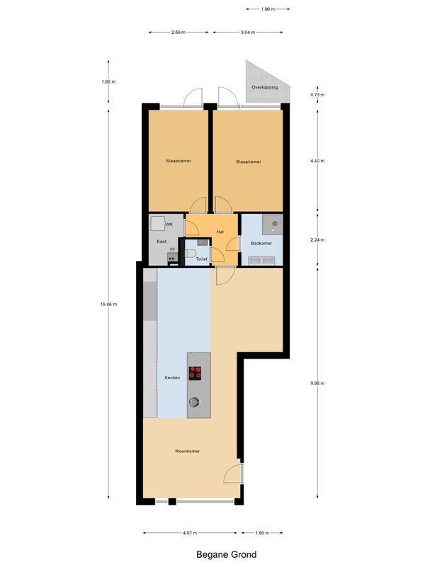 - De tussenwoning heeft een woonoppervlakte van 88 m² en beschikt over 3 kamers, waarvan 2 slaapkamers;