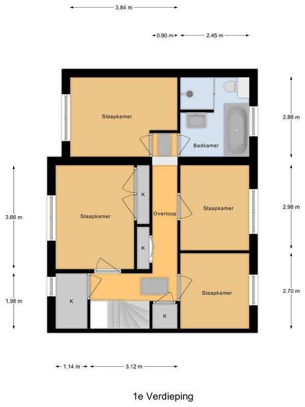 - Aanwezig (102 m², gelegen op het zuidwesten)