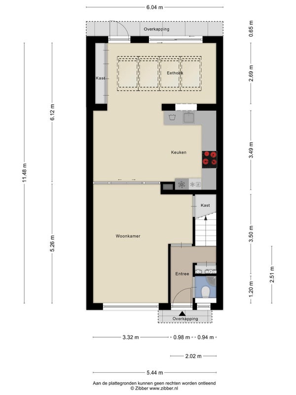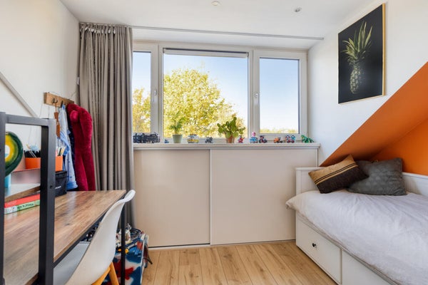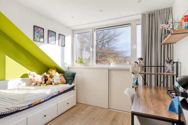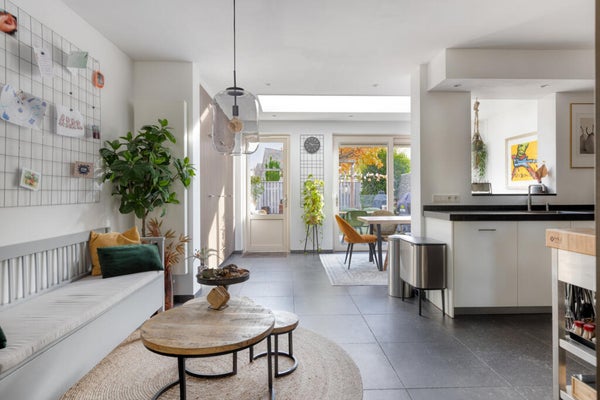 - De tussenwoning heeft een woonoppervlakte van 137 m² en beschikt over 6 kamers;