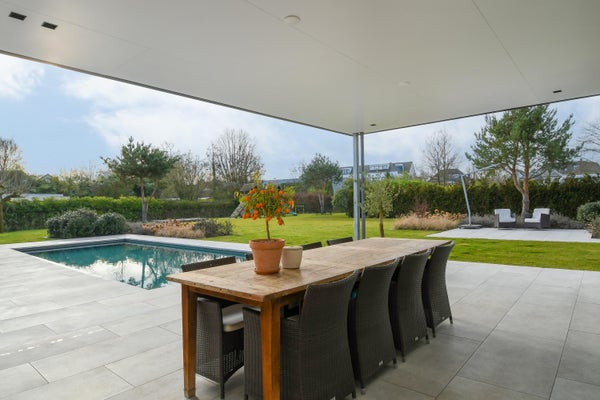 Deze luxueuze villa, gebouwd in 2023, biedt een hoogwaardig afwerkingsniveau en beschikt over 6 ruime slaapkamers en 2 badkamers. Met een woonoppervlakte van 379 m², is er ook een luxe woonkeuken met moderne apparatuur en een groot kookeiland. De riante living is licht en gezellig. De villa heeft een verwarmd zoutwaterbuitenbad van 10 x 4 meter met een poolhouse en een prachtig aangelegde tuin van 2.487 m². Op de tweede verdieping bevinden zich multifunctionele kamers, ideaal voor een gym of extra slaapkamers. Voorzien van energielabel A+++ en 34 zonnepanelen, is deze villa volledig gasloos met vloerverwarming en -koeling. Een perfecte plek in een kindvriendelijke buurt, dichtbij alle voorzieningen.