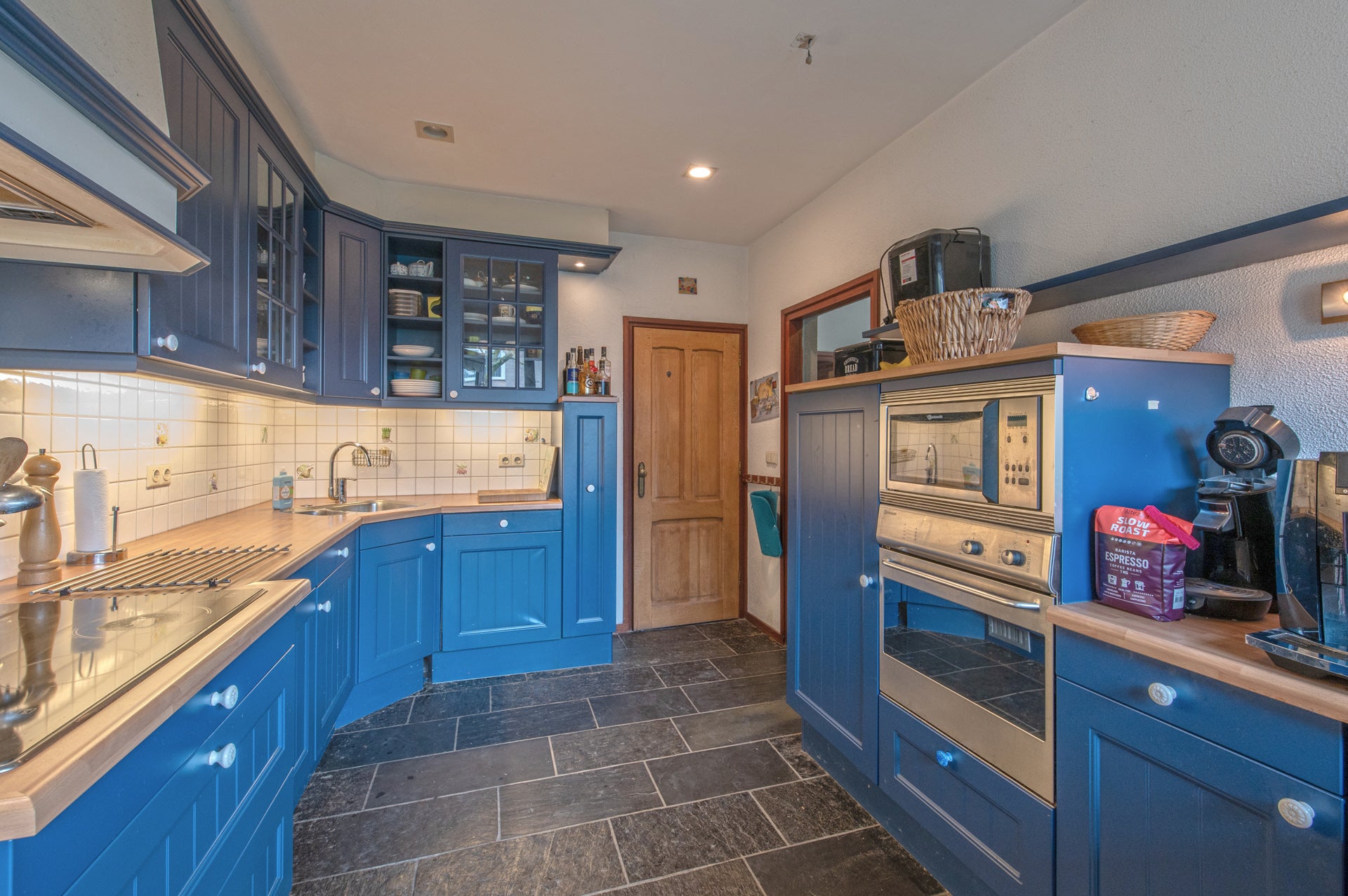 Op de begane grond vind je een ruime hal, een grote woonkamer van ca. 52 m² met open keuken en toegang tot de binnentuin. Op de eerste verdieping zijn drie slaapkamers en twee badkamers. Het souterrain heeft toegang tot de multifunctionele ruimte en een wijnkelder.