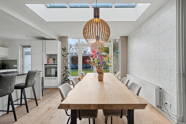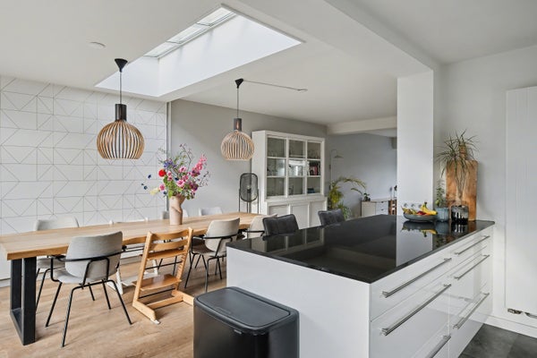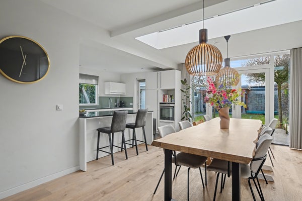 Aan de Resedalaan 30 in Waalre ligt een instapklare twee-onder-een-kapwoning, perfect voor gezinnen. Met vijf slaapkamers en een zonnige tuin op het zuiden, inclusief een ruime berging, biedt deze woning comfort en ruimte. De energiezuinige woning heeft een energielabel A++ en is voorzien van 12 zonnepanelen en een hybride warmtepomp. Gelegen in de kindvriendelijke wijk De Voldijn, zijn voorzieningen zoals een supermarkt, winkels, scholen en het bos dichtbij. De ruime L-vormige woonkamer met open keuken beschikt over moderne apparatuur en veel lichtinval. De eerste verdieping heeft drie slaapkamers en een luxe badkamer. Op de tweede verdieping zijn extra ruimtes en een werkplek te vinden. De tuin is ideaal voor ontspanning en heeft een sfeervolle loungehoek.