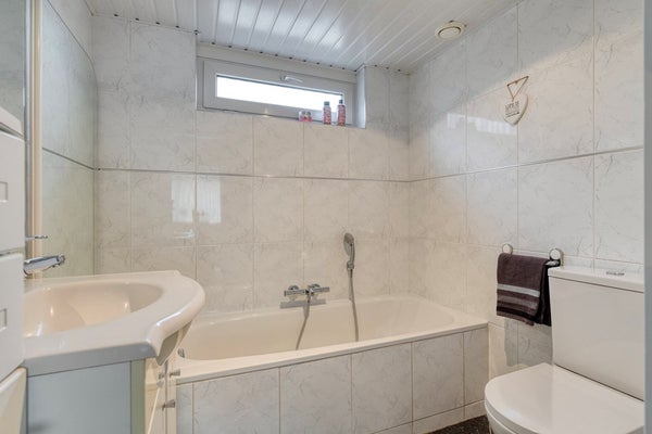 Op de eerste verdieping bevinden zich drie ruime slaapkamers voorzien van laminaatvloer en kunststof kozijnen met dubbel glas. Licht betegelde badkamer met een ligbad, wastafelmeubel en toilet.