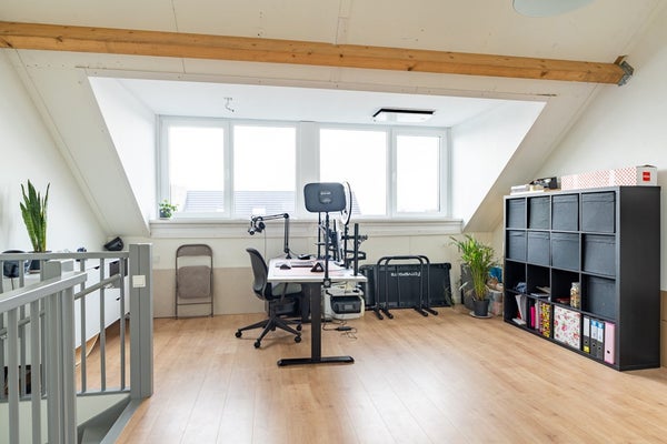 Riante open ruimte/ 4e slaap of werkkamer met XXL dakkapel en airco bereikbaar met een vaste trap. Ideale was-hoek met was-aansluitingen en mechanische ventilatie box. De grote ruimte is verder nog naar eigen smaak in te delen zo is het mogelijk om een 5e[VPM3.1][TK3.2] of zelfs 6e slaapkamer te creëren. Verder beschikt deze verdieping over een dakraam en extra bergruimte achter de knieschotten.