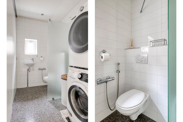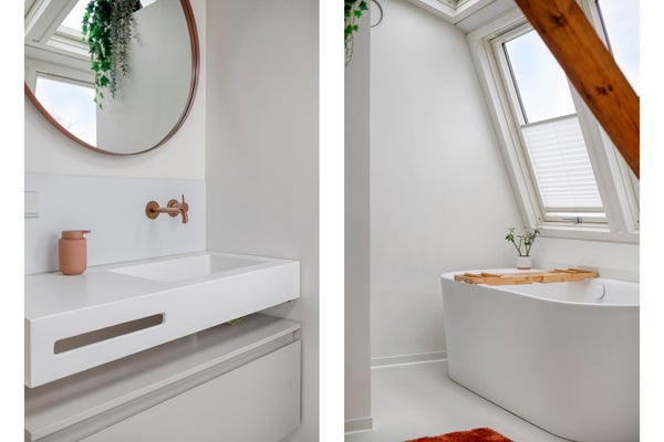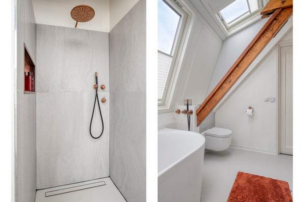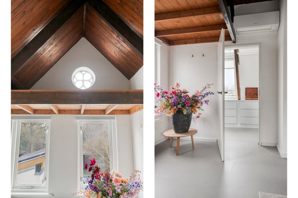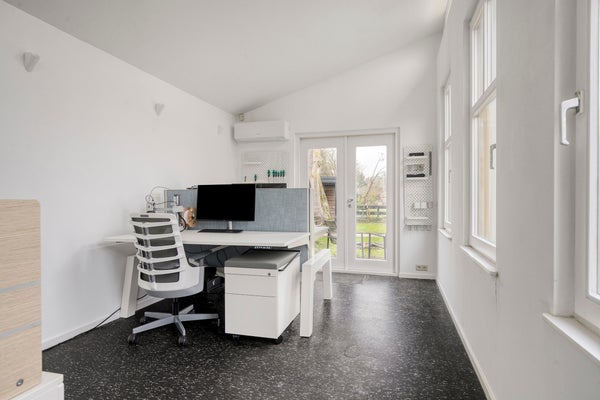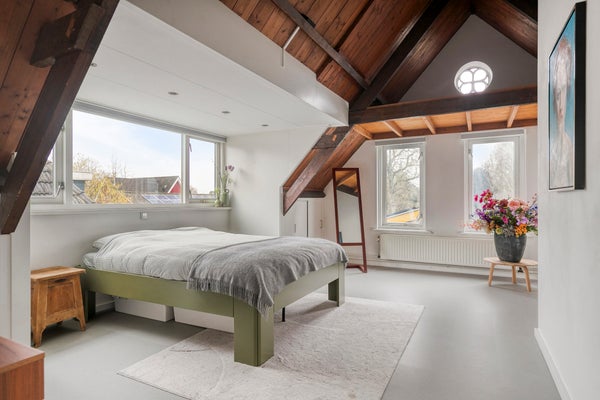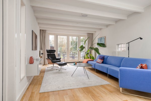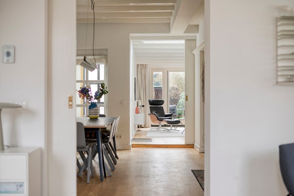 Op de eerste verdieping bevinden zich drie slaapkamers, waaronder een met een inloopkast. De moderne badkamer heeft een ligbad en inloopdouche. Achter de woning staat een bijgebouw van 31 m², geschikt voor werk of gasten. De tuin, zuidgelegen en 25 meter diep, is fraai aangelegd.