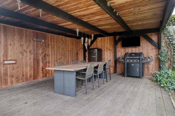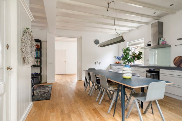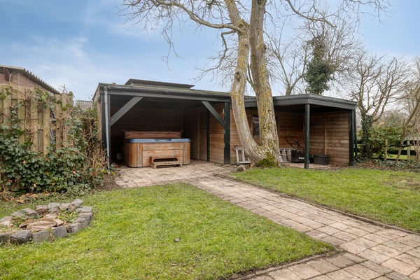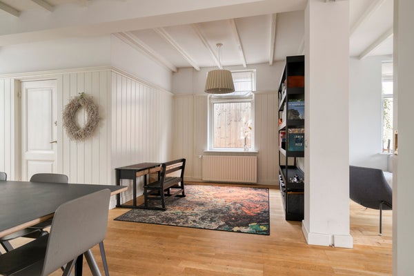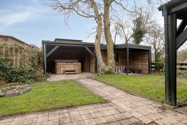 In het rustige dorp ligt deze vrijstaande woning tegenover een sfeervol straatje. De woning, met een rijke geschiedenis van meer dan een eeuw, biedt modern wooncomfort. De entree leidt naar de gezellige woonkamer van 27 m², verlicht door ramen aan drie zijden. Een schuifdeur opent naar een royale eetkeuken van 30 m², uitgerust met moderne apparaten. De tuinkamer, bereikbaar vanuit de keuken, is een lichte ruimte met openslaande deuren naar een mooie tuin.