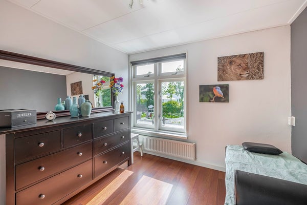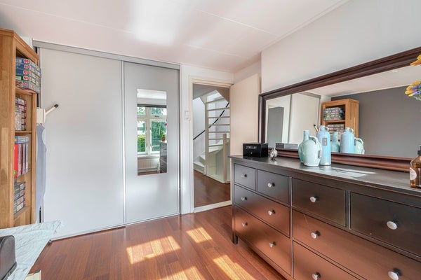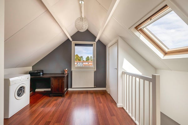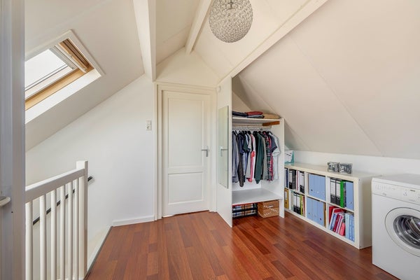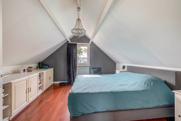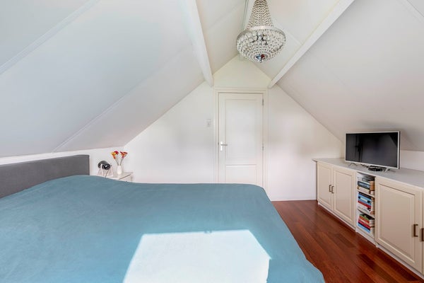 Tweede verdieping (de opbouw): Deze extra woonverdieping is keurig afgewerkt met laminaat en glad gestukte wanden. De slaapkamer is heerlijk ruim (ca. 415 x 400 cm) en ook op de voorzolder (ca. 415 x 335 cm) vind je onder de schuine kap nog een extra ingebouwde bergkast.