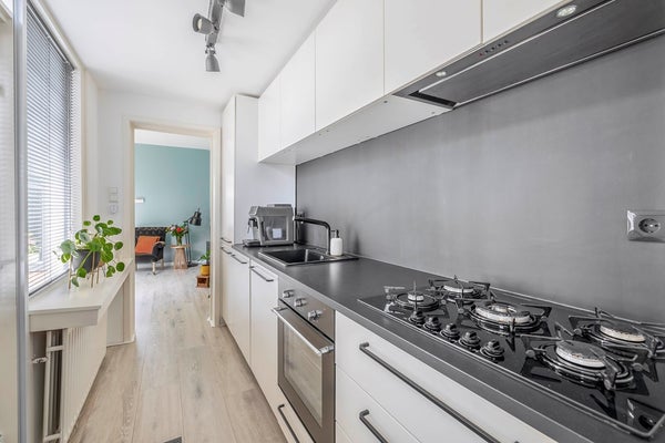 De keuken zelf is modern en (op de koelkast en gasplaat na) volledig vernieuwd. Met een afmeting van ca. 495 x 170 cm en flink wat kastruimte kun je hier als kookliefhebber prima uit de voeten!