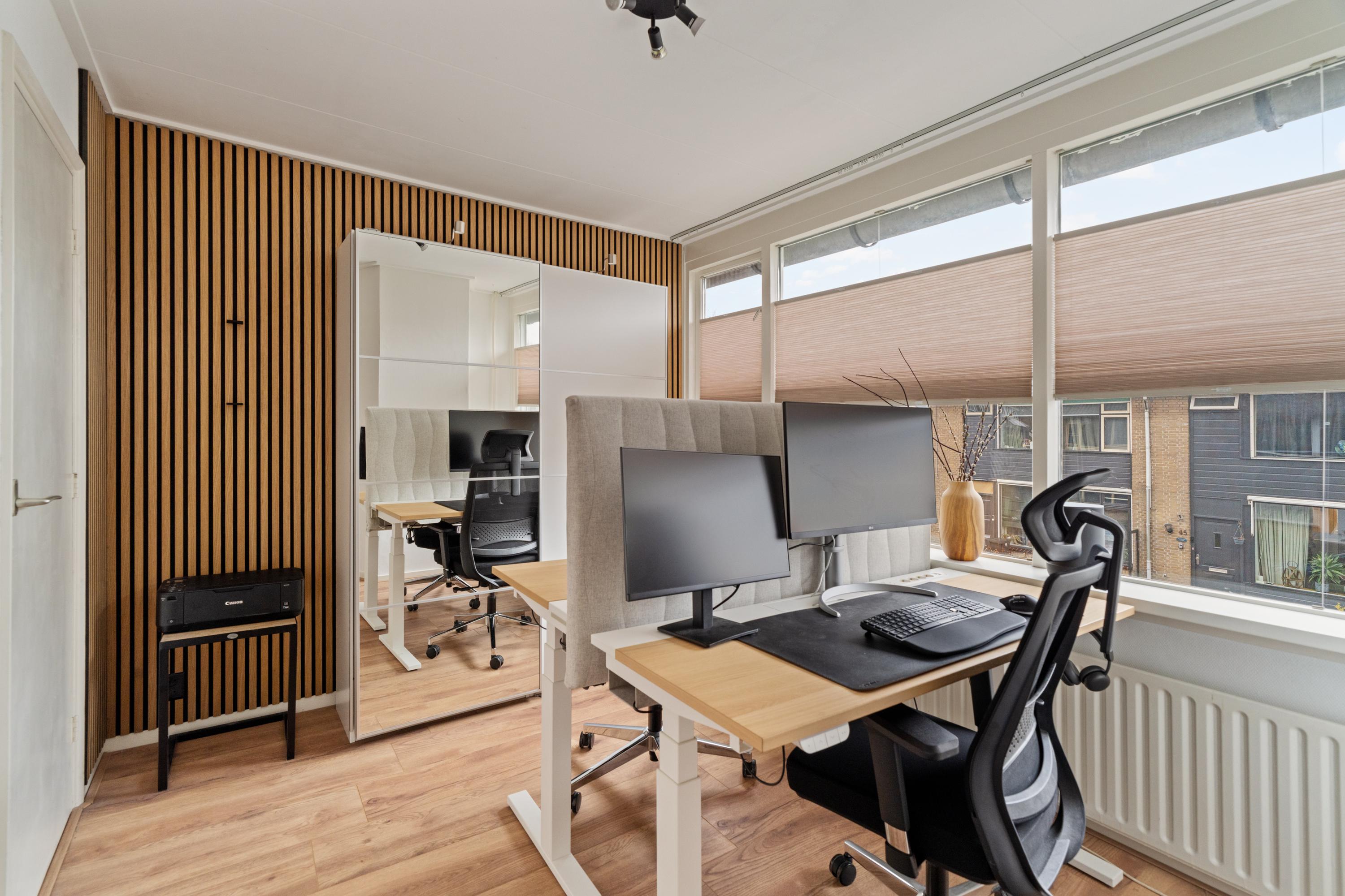 Dit instapklare eengezinswoning met energielabel A kan jouw nieuwe thuis worden. Het huis beschikt over vier slaapkamers en een lichte, uitgebouwde woonkamer. De moderne U-vormige keuken is uitgerust met een 5-pits gaskookplaat, vaatwasser en combi-oven. Op de eerste verdieping vind je enkele comfortabele slaapkamers en een grote, volledig betegelde badkamer met zowel een ligbad als een aparte douche. De tweede verdieping heeft een ruime slaapkamer met een dakkapel die veel daglicht binnenbrengt.
