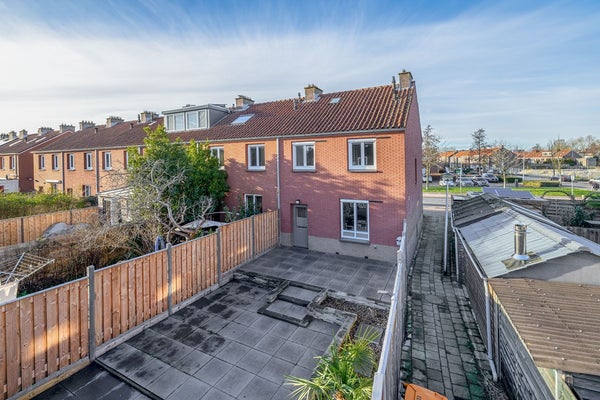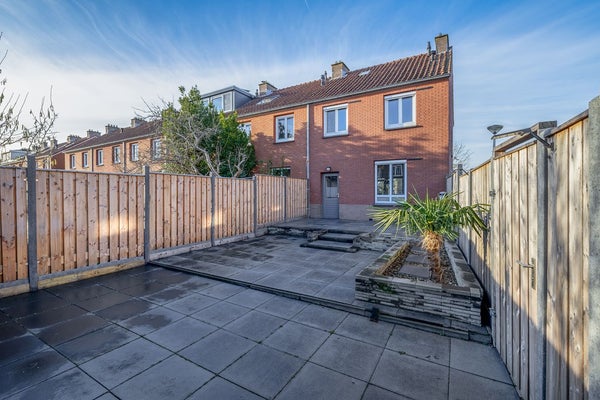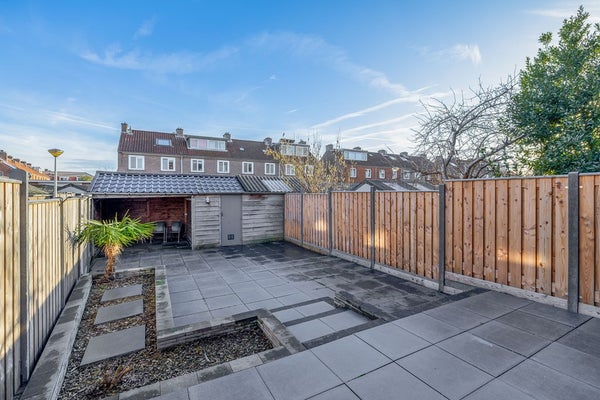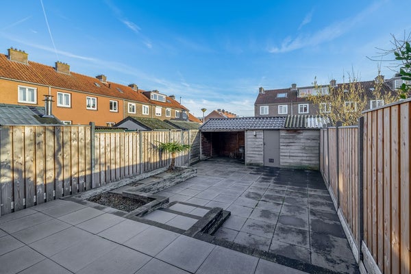 De bijzonder grote achtertuin is gelegen op het zuidoosten; een zonovergoten plek waar je bijna de hele dag van de zon kunt genieten. De tuin is onderhoudsvriendelijk aangelegd en vrijwel volledig bestraat. De grote veranda is perfect voor sfeervolle zomeravonden. Dankzij de achterom is de tuin goed bereikbaar. De achtertuin is rondom voorzien van nieuwe schuttingen.