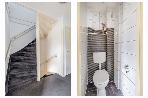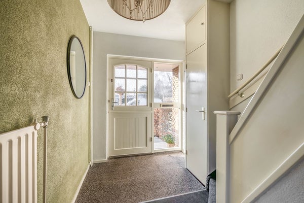 Je komt binnen via de verzorgde voortuin. In de royale hal vind je de meterkast, de trapopgang, een trapkast en een moderne, geheel betegelde toiletruimte met hangend toilet. De lichte doorzon-woonkamer heeft een sfeervolle open haard en een keurige laminaatvloer. De open keuken is van alle gemakken voorzien, zoals een vaatwasmachine, gaskookplaat, oven, magnetron en koel/vrieskast. Vanuit de keuken kom in een aangebouwde voorentree, die je vervolgens toegang geeft tot de fraaie achtertuin. De entree kan goed gebruikt worden als garderobe of bijvoorbeeld als bijkeuken met een extra koelkast.