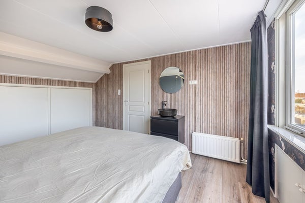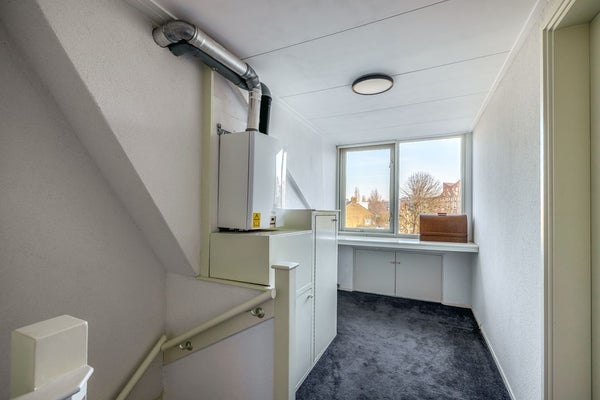 Via een vaste trap bereik je de zolder. Hier vind je een mooie, ruime overloop met de cv-opstelling en genoeg plek voor bijvoorbeeld je eigen werkplek. Daarnaast is er een grote vierde slaapkamer, die dankzij de woningbrede dakkapel heerlijk licht en ruim aanvoelt. Onder de schuine kap van het huis zijn bergschotten gemaakt, zodat koffers en de kerstspullen ook opgeruimd kunnen worden.