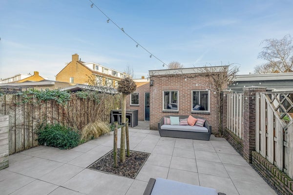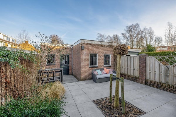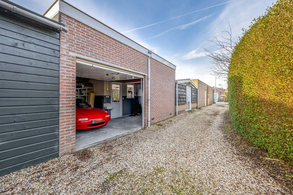 Garage en tuin: De achtertuin is keurig onderhouden en biedt toegang tot de grote garage van bijna 26 m². Dit is een ideale plek voor de klusser of voor extra opslag: de garage is bereikbaar via het achterpad en heeft een vliering, een wateraansluiting en elektra.