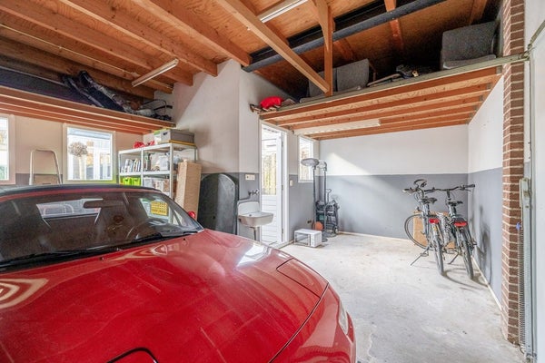 • Garage van bijna 26 m² met vliering, water en elektra.