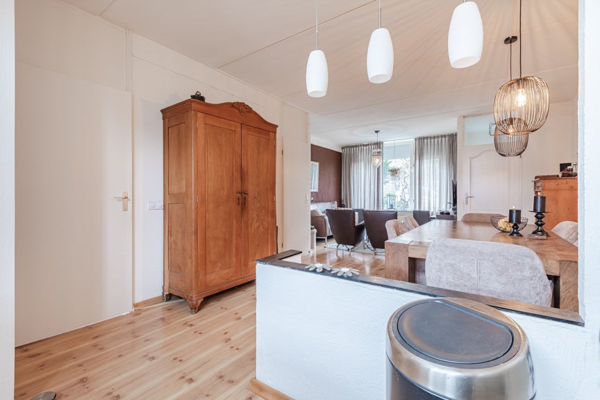 Deze eindwoning beschikt over vier slaapkamers en ligt in een rustige woonwijk, op loopafstand van het winkelcentrum van Wageningen. Met 7 zonnepanelen en nabij de idyllische molen 'de Vlijt', busstation, scholen en een supermarkt biedt dit huis veel gemak. De indeling omvat een entree met hal, waar de lichte woonkamer met houten vloer en onder-stairs opslag toegankelijk is. De open keuken is uitgerust met inbouwapparatuur, waaronder een 4-pits gasfornuis. De eerste verdieping heeft drie slaapkamers en een badkamer met ligbad en toilet. De tweede verdieping biedt nog een slaapkamer en berging met dakraam. De achtertuin is compleet met terras, gazon en een vrijstaande schuur met elektriciteit.