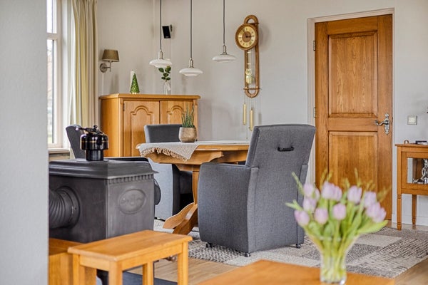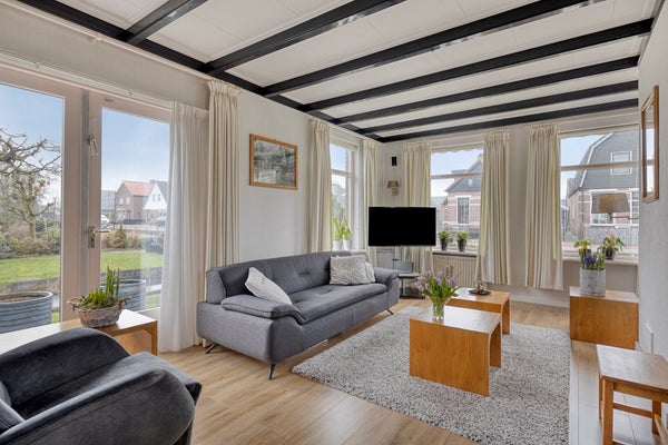 - de woning beschikt over een lichte woonkamer met uitzicht over de tuin en het water;