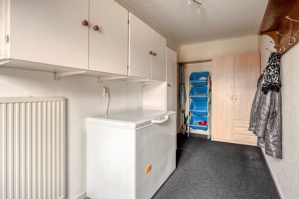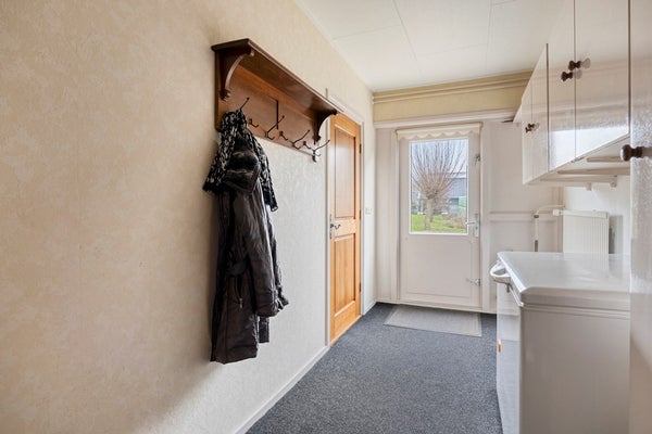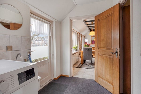 Entree/hal met meterkast en trapopgang. De woonkamer is voorzien van veel lichtinval, openslaande tuindeuren, een houtkachel (ter overname) en een toegang naar de woonkeuken. De woonkeuken beschikt over een tuindeur en een keukenblok met diverse inbouwapparatuur, o.a. inductiekookplaat, afzuigkap, oven, vaatwasmachine en een koelkast. Via de bijkeuken bereikt u de tuin en een gang met een toegang naar de tuin en de ruime slaapkamer. De badkamer, bereikbaar vanuit de hal en de slaapkamer, is voorzien van een douchehoek, toilet, bidet en een dubbele wastafel in meubel.