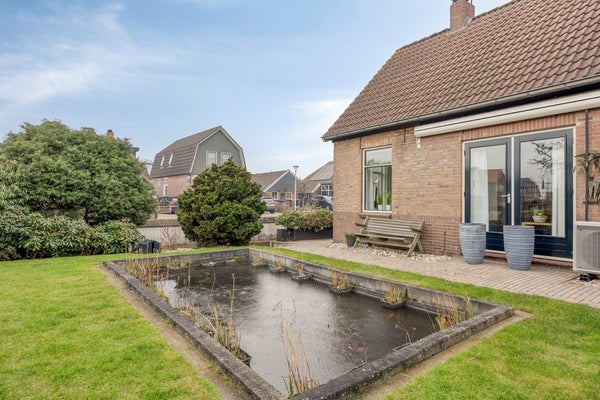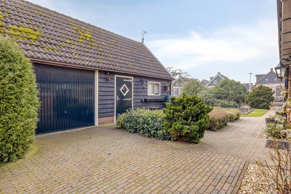 De tuin, gelegen rondom de woning, is voorzien van uitzicht over het water, veel groen, terrassen, een insteekhaven, een carport, parkeergelegenheid en een ruime garage met berging en een zolder.