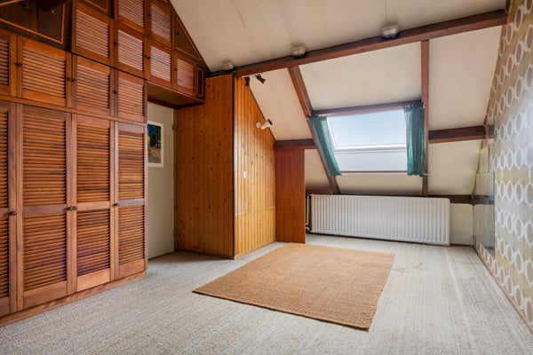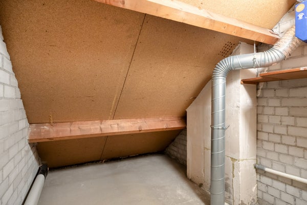 Overloop , een berging aan de voor- en achterzijde, in laatstgenoemde bevindt zich de opstelplaats voor de Cv-installatie, grote zolderkamer met Velux dakvenster.