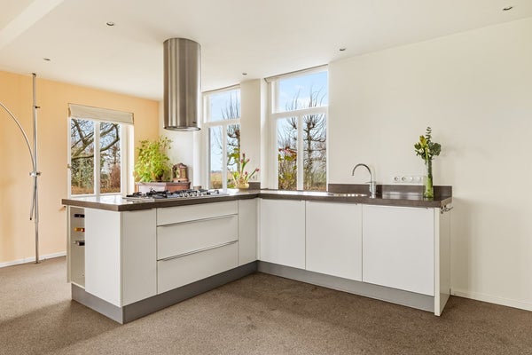U betreedt de woning via de ruime hal, waar u toegang heeft tot het toilet met fonteintje, de praktische wasruimte en de woonkamer. De lichte en sfeervolle woonkamer met open keuken vormt het hart van de woning en biedt een prachtig uitzicht over het omliggende landschap.