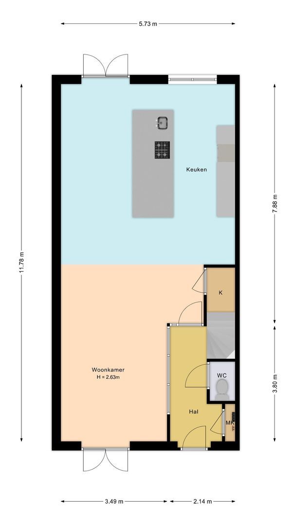 - De tussenwoning heeft een woonoppervlakte van 162 m² en beschikt over 5 kamers, waarvan 4 slaapkamers;