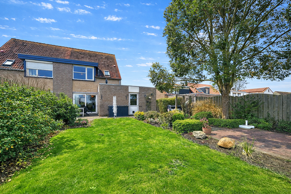 Parkeer tot twee auto’s op de lange oprit aan de voorzijde. De voortuin en oprit zijn fraai aangelegd en de achtertuin is langs de zijkant toegankelijk. Deze circa 15 meter diepe en 10 meter brede achtertuin heeft een ligging op het Oosten en een ver uitzicht over de Zeeuwse polder. Met de 2 terrassen kan je altijd wel ergens genieten van de zon en de natuur.