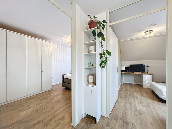 De tweede verdieping is ook toegankelijk middels een vaste trap. De hoge nok zorgt voor nog een grote ruimte welke nu in gebruik is als berging. Uiteraard is deze verdieping ook eenvoudig te gebruiken als slaapkamer. Tevens is op deze verdieping het WTW-systeem voorzien.