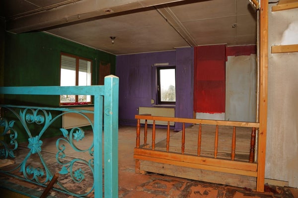 De trap brengt je naar de verdieping, waar meerdere kamers zijn gesitueerd. Hier bevindt zich een ruime “overloop” die zich uitstekend leent als hoofdslaapkamer. Dankzij de afmetingen is hier ruimte voor een groot bed en kasten, en met een nieuwe afwerking kan dit een rustige en comfortabele slaapruimte worden.
