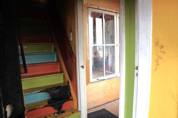 Elektra en centrale verwarming zijn na de brand niet meer gebruikt.