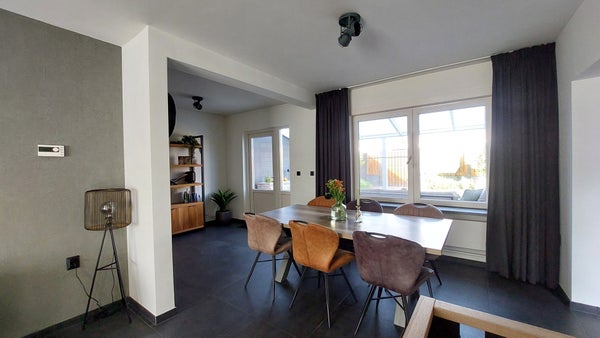 - De eindwoning heeft een woonoppervlakte van 100 m² en beschikt over 7 kamers, waarvan 3 slaapkamers;