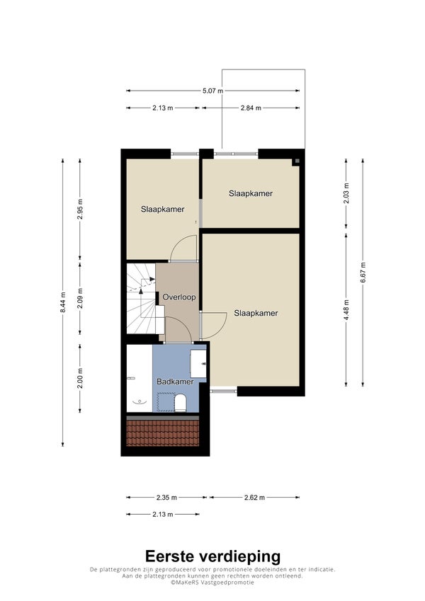 - De tussenwoning heeft een woonoppervlakte van 107 m² en beschikt over 6 kamers, waarvan 4 slaapkamers;