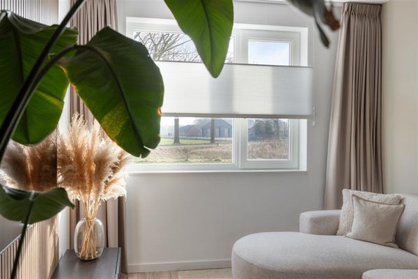 -Sfeervolle woonkamer met een vrij uitzicht over de omliggende landerijen – een schilderij dat met de seizoenen verandert.