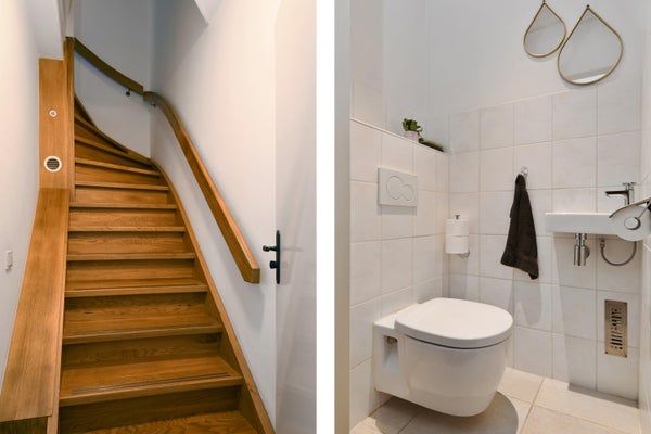 • Toiletruimte gesitueerd in portaaltje onderaan de trap