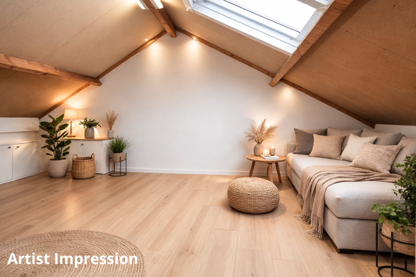 Via de vaste trap bereik je de tweede verdieping met een voorzolder en een kamer met dakraam. Deze ruimte is uitermate geschikt als vierde slaapkamer, werkruimte of hobbykamer. Hier bevinden zich tevens de combiketel (2025), de omvormer van de zonnepanelen en de mechanische ventilatie.