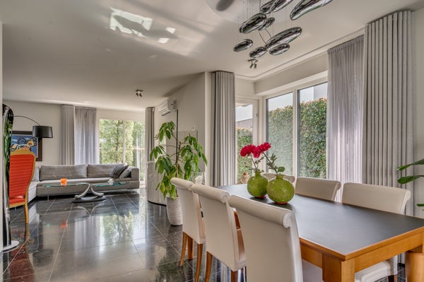 - De tussenwoning heeft een woonoppervlakte van 199 m² en beschikt over 9 kamers, waarvan 5 slaapkamers;
