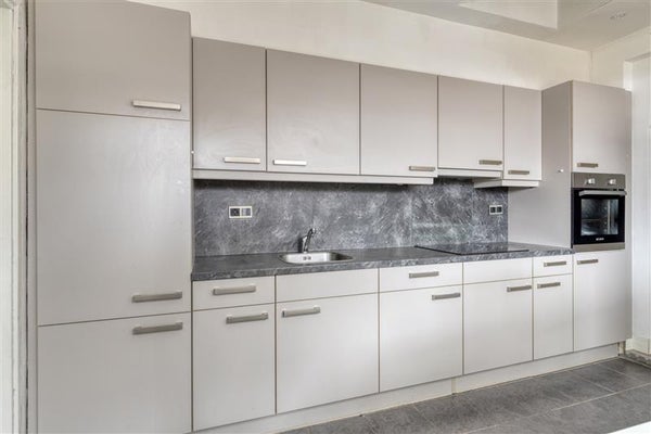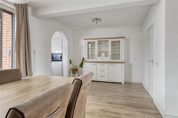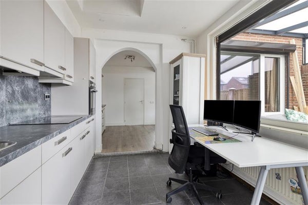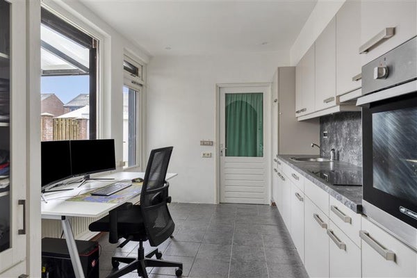 De keuken bevindt zich aan de achterzijde van de woning. Deze is van alle gemakken voorzien, waaronder een inductiekookplaat, een koelkast en een oven. Vanuit de keuken loop je door naar de bijkeuken. Deze biedt niet alleen handige extra bergruimte, maar is ook uitgerust met witgoedaansluitingen.