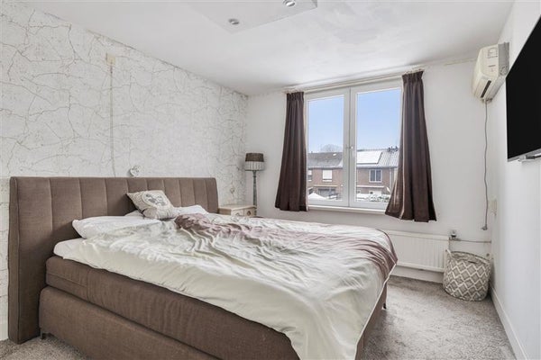 Op de eerste verdieping vind je drie fijne slaapkamers die allemaal zijn voorzien van rolluiken. De badkamer is functioneel ingericht en is in 2025 vernieuwd. De ruimte is uitgerust met een inloopdouche en een wastafel, wat zorgt voor een frisse en strakke uitstraling.