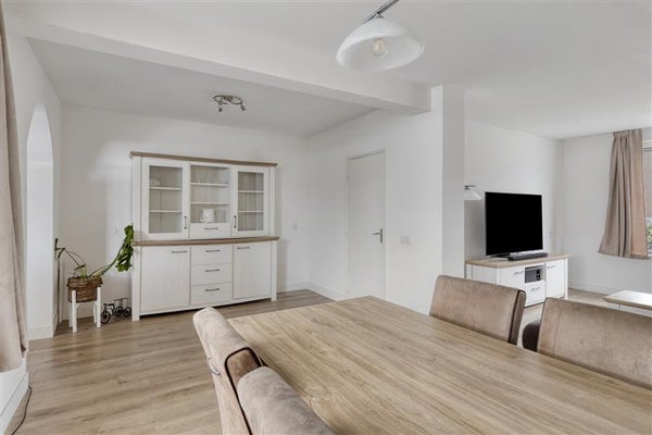 Bij binnenkomst word je verwelkomd in een lichte hal met voldoende ruimte voor een garderobe. Vanuit de hal stap je door naar de ruime, lichte woonkamer. De grote ramen zorgen hier voor een fijne hoeveelheid daglicht, wat de ruimte nóg groter doet aanvoelen. In de woonkamer geniet je bovendien van vloerverwarming, waardoor dit een comfortabele plek is om te ontspannen – ongeacht het seizoen.