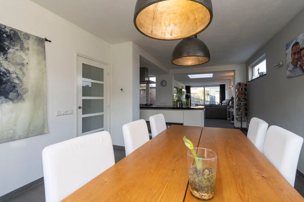 Deze hoekwoning biedt een unieke kans om luxe, comfort en duurzaamheid te combineren. Bij binnenkomst valt de hoogwaardige afwerking op, met vloerverwarming op de begane grond en een moderne toiletruimte. De royale eetkamer is licht en kijkt uit op een luxe keuken met kookeiland en apparatuur. De woonkamer met schuifpui en lichtkoepel is perfect om te ontspannen en biedt uitzicht op de onderhoudsvriendelijke achtertuin. De eerste verdieping heeft 3 slaapkamers en een moderne badkamer. De ruime zolder leent zich uitstekend voor extra gebruik. Deze woning, gelegen aan een rustige weg in een woonwijk, is verder verbeterd met zonnepanelen, airco’s, en isolatie. Met parkgelegenheid op eigen terrein en een tuin op het westen is dit een ideale plek om te wonen.