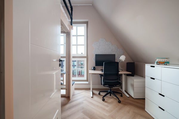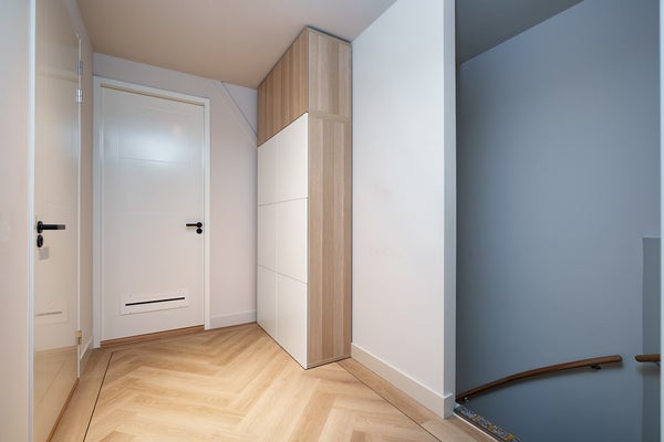 This floor houses two spacious bedrooms, a separate toilet and a luxurious bathroom with walk-in shower, wide washbasin unit and stylish bathtub (LoooX). Opposite the toilet is a separate room that is perfectly suited as a walk-in closet.
