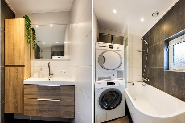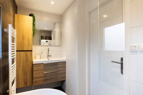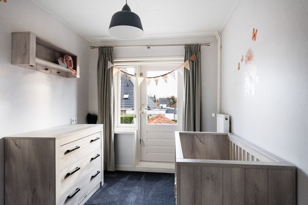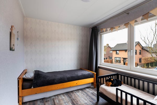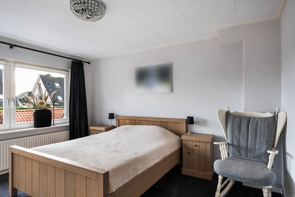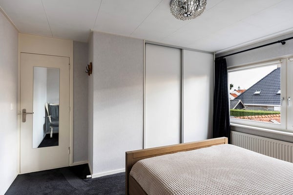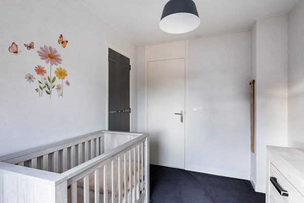 Vanaf de overloop heb je toegang tot drie slaapkamers en de badkamer. De badkamer is volledig betegeld en voorzien van een ligbad met douche, een wastafelmeubel, designradiatoren én aansluitingen voor de wasmachine en droger. De ouderslaapkamer ligt aan de achterzijde van de woning en heeft een praktische schuifkastenwand. De naastgelegen slaapkamer beschikt over een inbouwkast en een deur naar het balkon. Aan de voorzijde bevindt zich de derde slaapkamer. Alle kamers zijn netjes afgewerkt en voorzien van rolluiken.