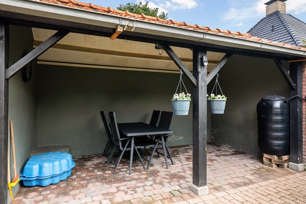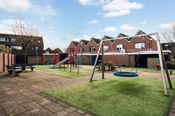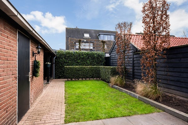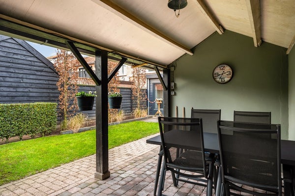 De fraai aangelegde achtertuin met bestraat terras, groene borders en gazon ligt op het zuidoosten en is via een achterom bereikbaar. Daarnaast is er een gezellige overkapping van circa 14 m² en een berging van circa 9 m² aanwezig. Een ideale plek om buiten te zitten en volop van je privacy te genieten. In de wijk is bovendien voldoende parkeergelegenheid en speelruimte aanwezig.