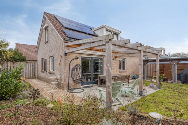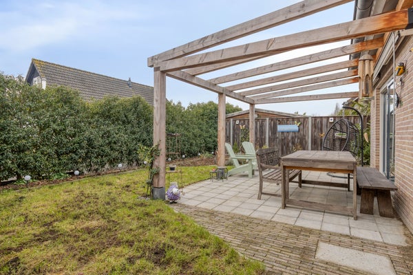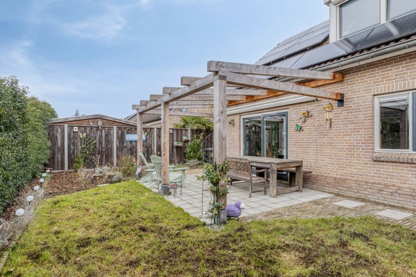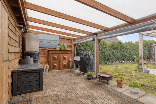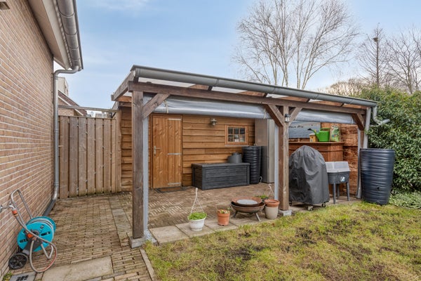 De goed onderhouden tuin ligt rondom de woning, biedt veel privacy, heeft een eigen oprit met een carport, ca. 3.33x6.03 m (voor 2 auto's - voorbereiding elektrische auto), een zonneterras, een hobby-/fietsenruimte, ca. 2.47x4.70 m, met een toffe aangebouwde overkapping waar je elk jaargetijde heerlijk kunt genieten.