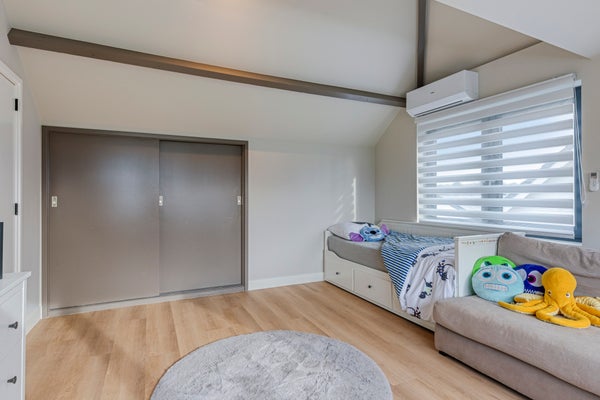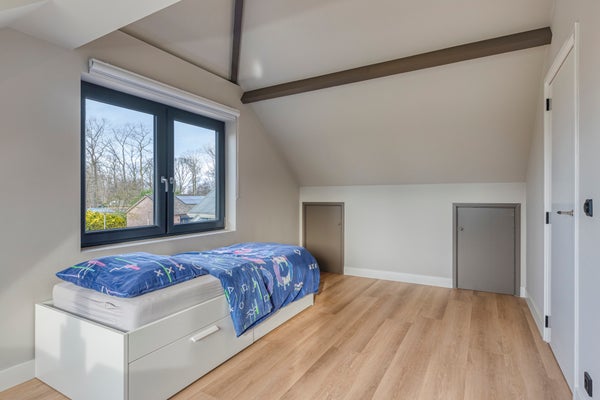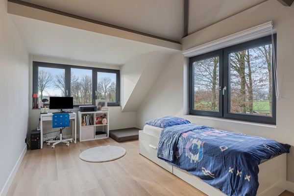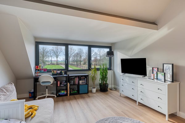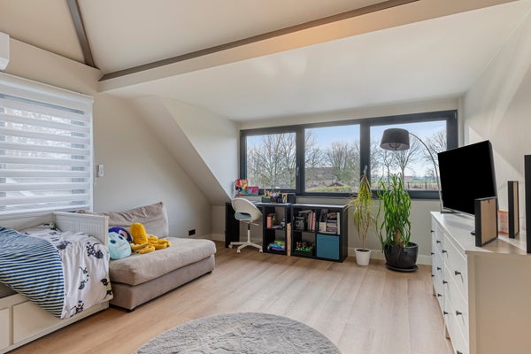 Deze twee ruime slaapkamers op de eerste verdieping zijn voorzien van een grote dakkapel, die zorgt voor veel lichtinval en een prachtig uitzicht over de achtergelegen landerijen. De kamers zijn afgewerkt met een fraaie pvc-vloer en strakke wanden, wat zorgt voor een rustige en moderne uitstraling. Daarnaast beschikken beide slaapkamers over praktische vaste kasten, waardoor er volop bergruimte is.