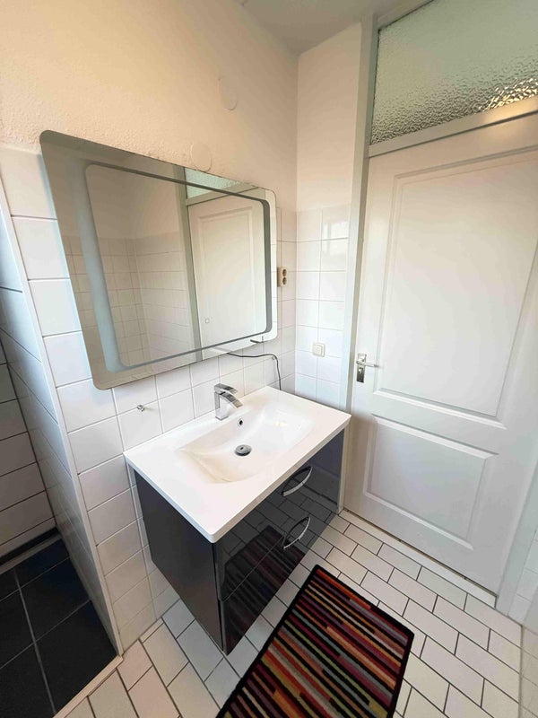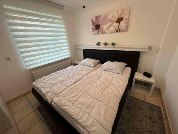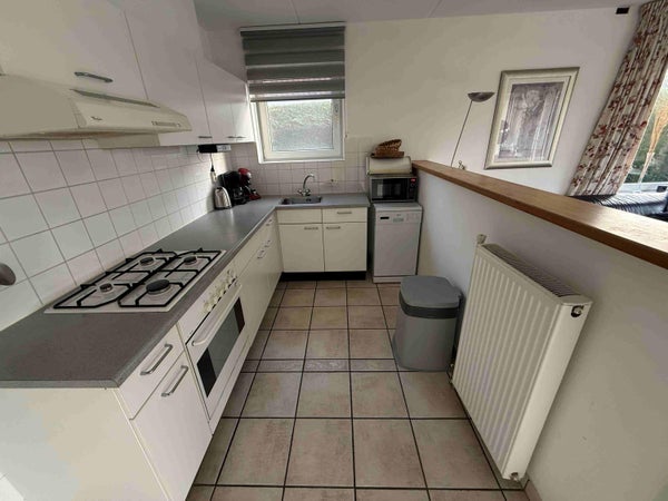 Binnenkomst via de hal met toegang tot de badkamer met wastafel, bad en inloopdouche met regendouche. Er is een apart toilet en een slaapkamer. De half open keuken en woonkamer, met nieuwe aluminium schuifpui uit 2018, leiden naar het zonnige terras met zonnescherm. De bijkeuken biedt ruimte voor wasmachine, droger en extra koelkast.
