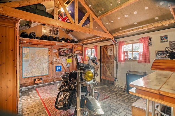 Achter in de tuin is een tuinhuis ingericht als een barretje.