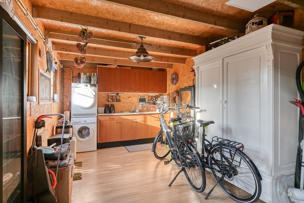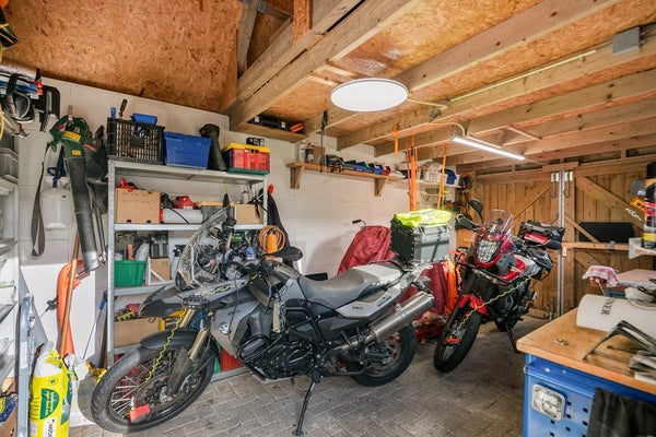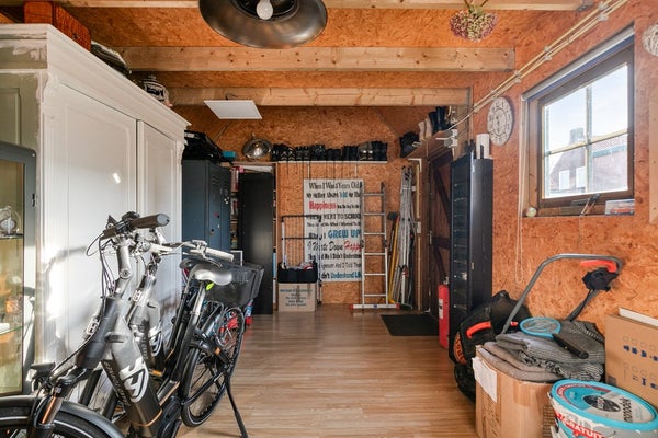 De geïsoleerde ruimte achter de garage biedt meerdere mogelijkheden, denk bijvoorbeeld aan een werkplaats, praktijk of kantoor aan huis of mantelzorg.