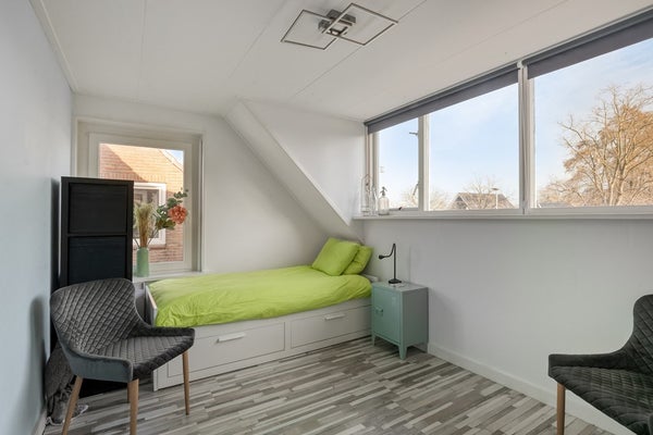 Op de verdieping is een overloop met drie volwaardige slaapkamers en een bergkast. Bovenin de overloop zit het luik naar de bergzolder.